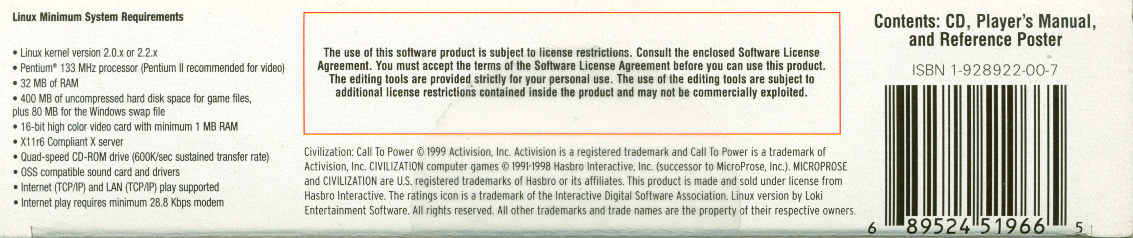 - Jewel Case (UPC: 6 89524 51966 5; ISBN: 1-928-922-00-7; Part Numbers: BO 3791, IN 3791) with 2 CDs (Part Numbers: CD 4215, CD 4201)