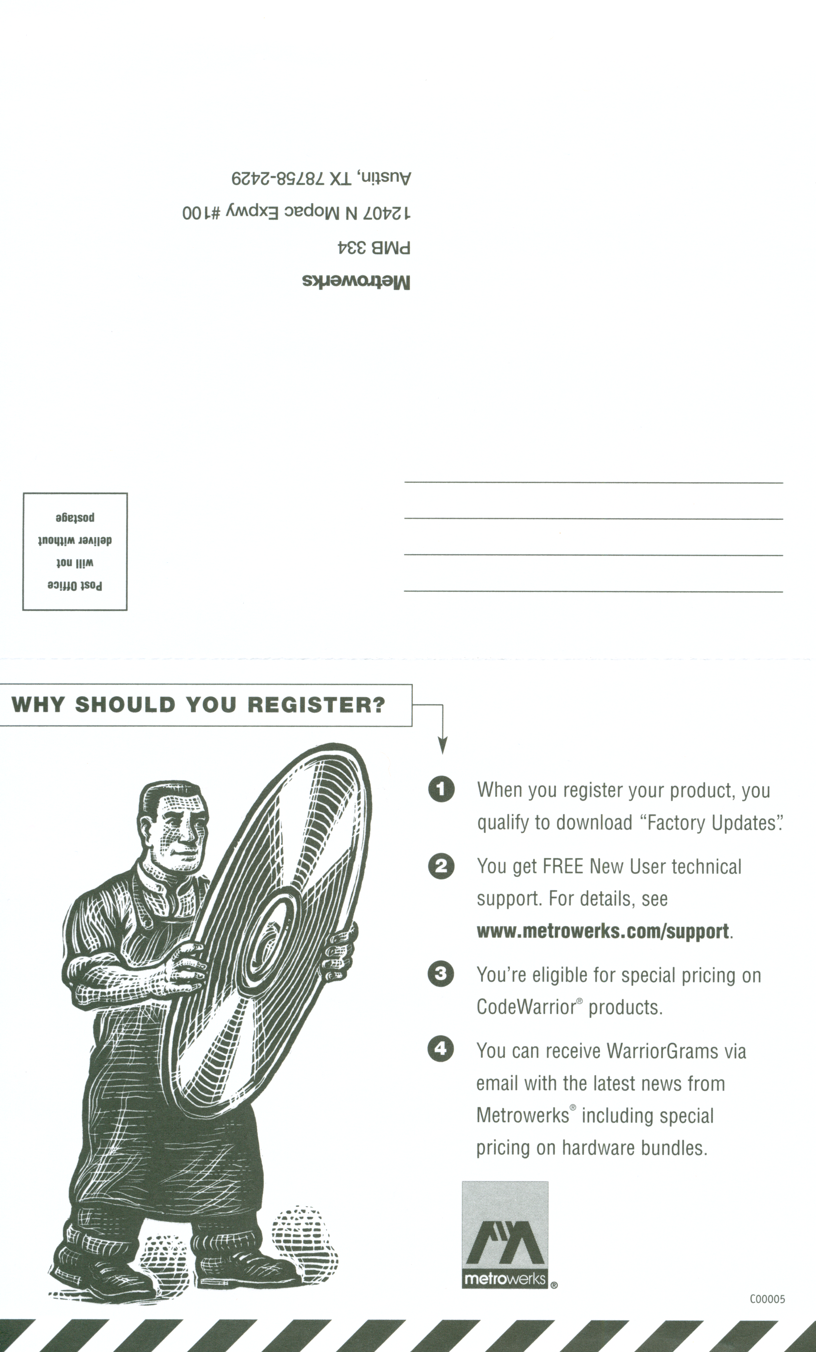 Back side of Registration Card (Part Number: C00005)